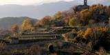 In the hollow of Carema the vineyards are situated on terraces dug out of the rock on the slopes of Monte Maletto, between 350 and 700 metres above sea level. The whole hillside is covered with pergolas supported by cut-off cone-shaped pillars made of stone. It is the stone of the pillars that provides the optimum climatic conditions for the vines, accumulating heat during the day and then releasing it at night.